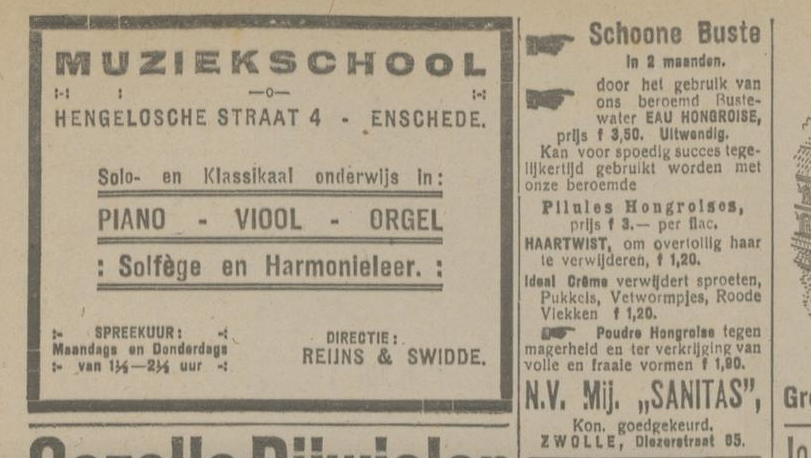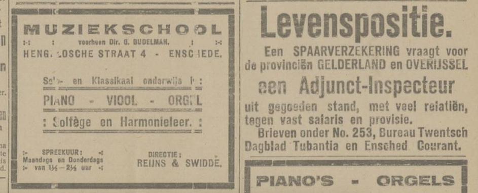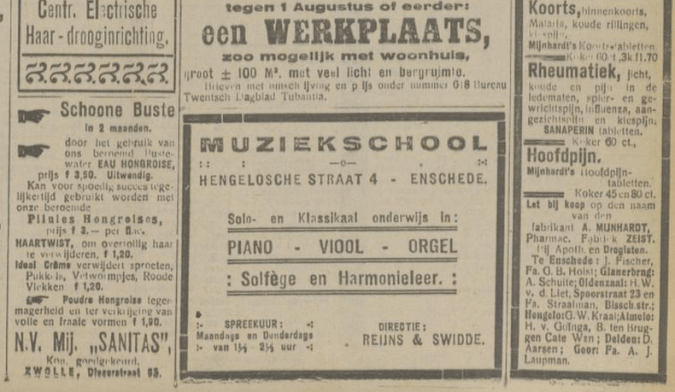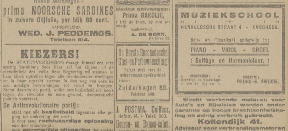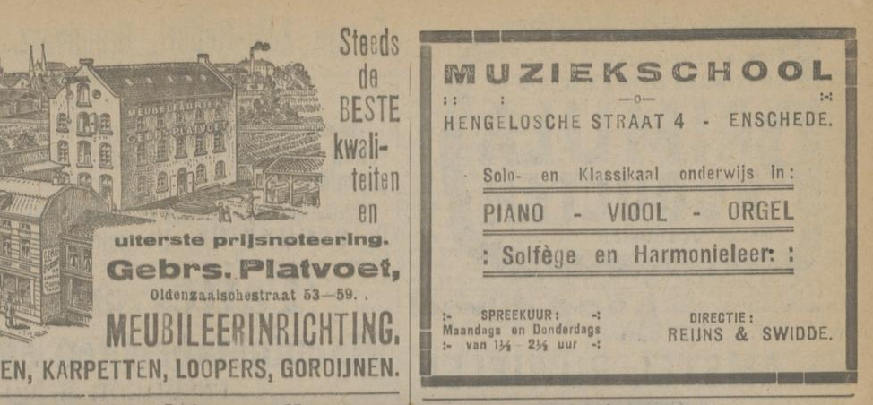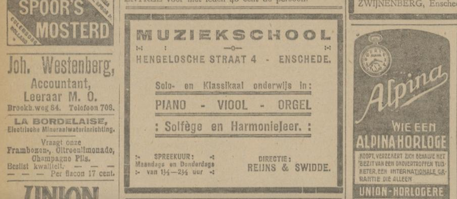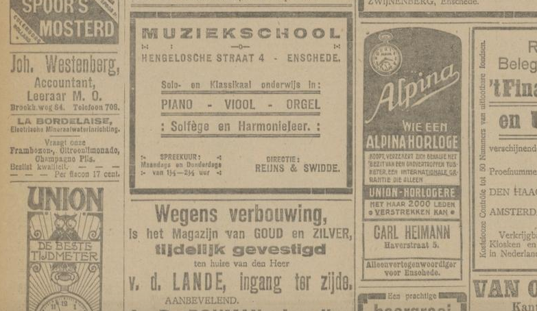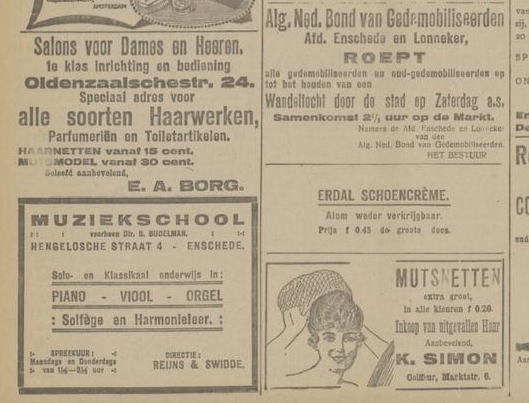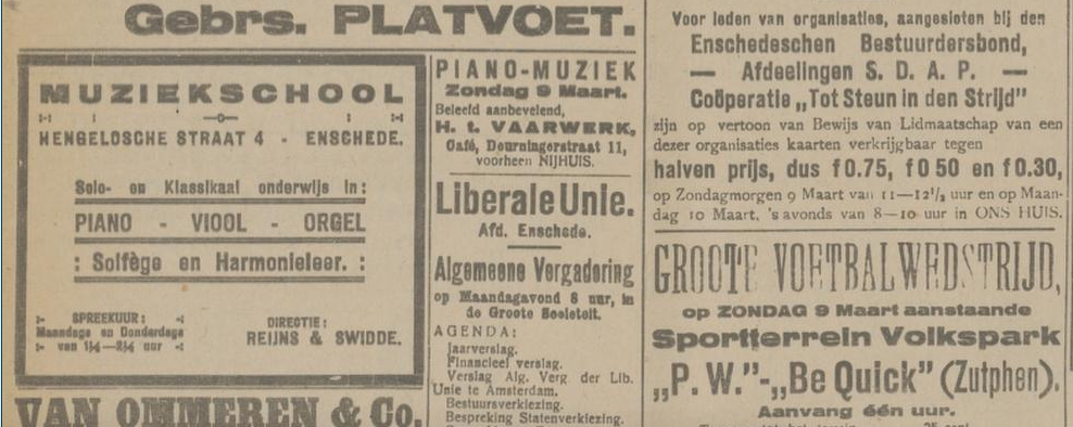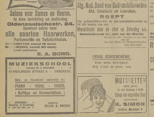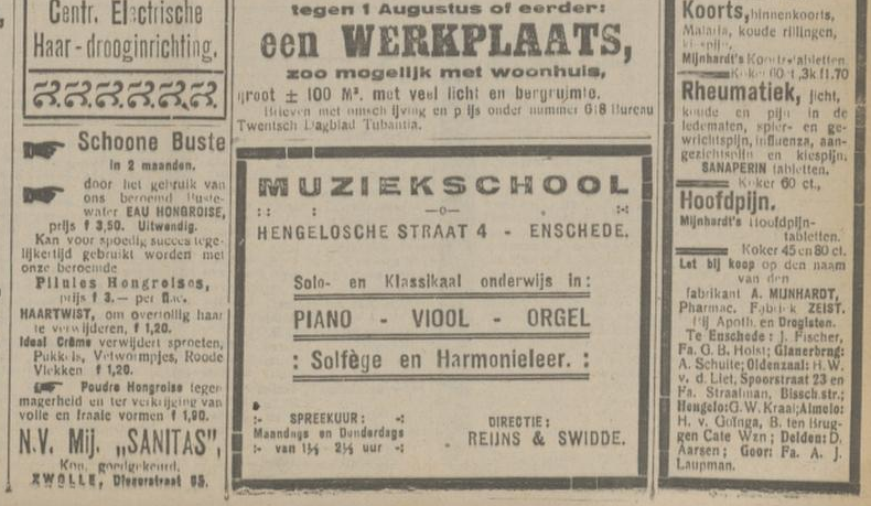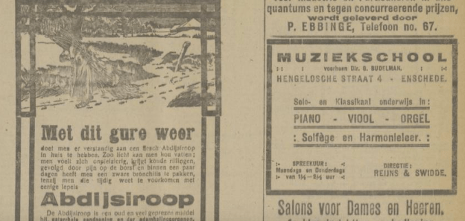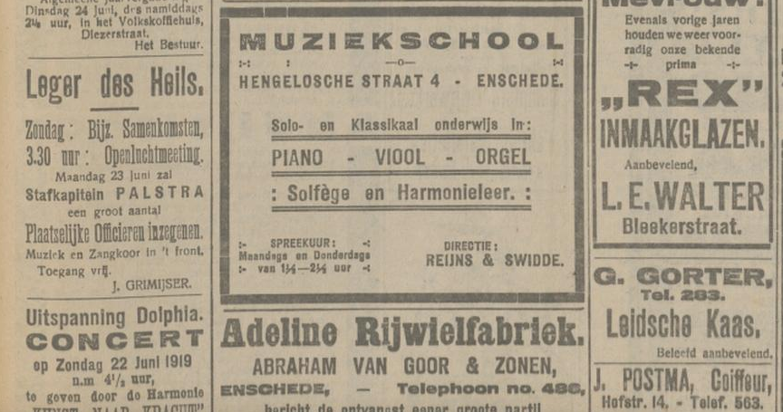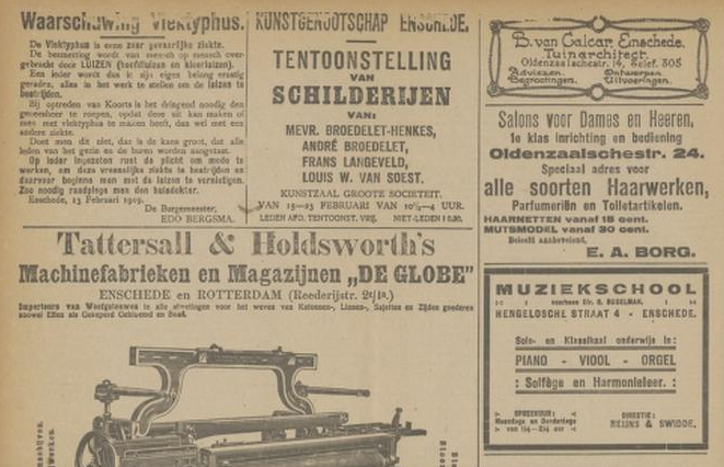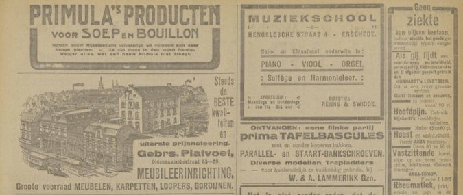 1919 adverteren in Twentsch dagblad Tubantia en Enschedesche courant 1 februari 8 februari 12 februari 15 februari 19 februari 22 februari 26 februari 8 maart 29 maart 5 april 19 april 26 april 3 mei 10 mei 17 mei 24 mei 7 juni 14 juni 21 juni 9 augustus 8 september