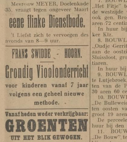 In de krant wordt aangekondigd dat de bioscoop aan het Groote Noord aan haar inrichting verbonden heeft de heren Swidde en Reijns (met y), die het aantrekkelijke van de voorstellingen gaan verhogen.
