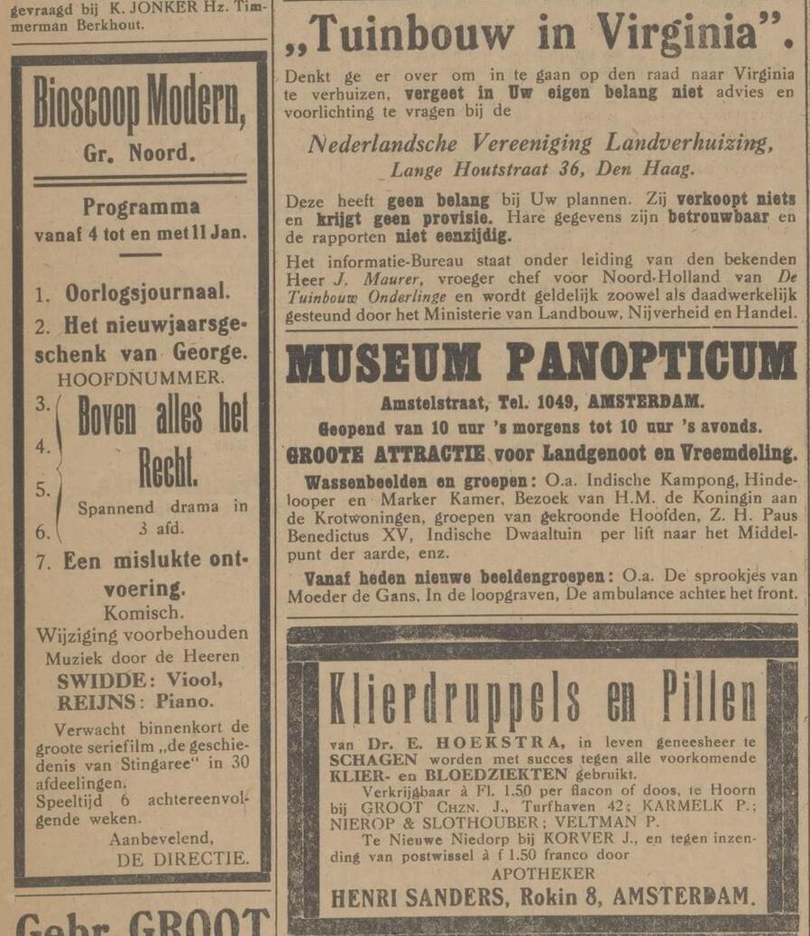 De directie van bioscoop Modern kondigt een grote film in 24 afleveringen aan, ‘Stingaree’, die 6 speelweken in beslag gaat nemen. Het succes zal groot zijn. Muziek van Swidde en Reijns. In 1934 is het verhaal van ‘Stingaree’ opnieuw verfilmd, nu met sprekende acteurs.