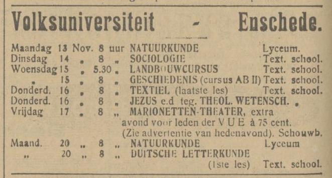 13 november 1922 – Twentsch dagblad Tubantia en Enschedesche courant