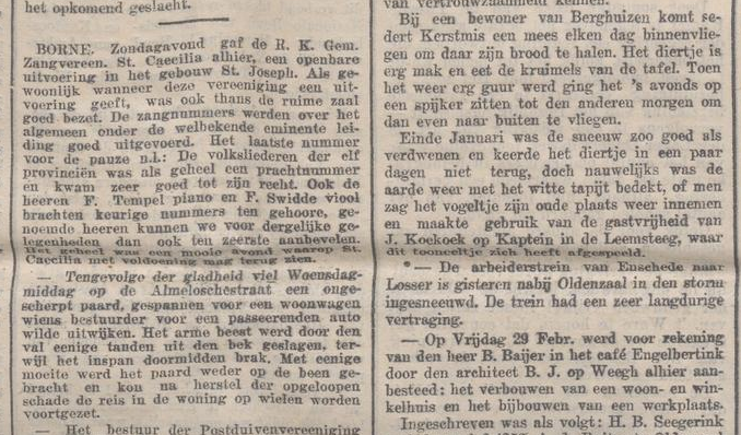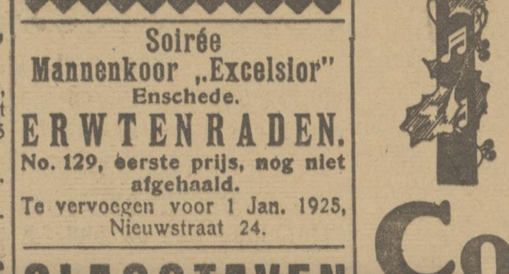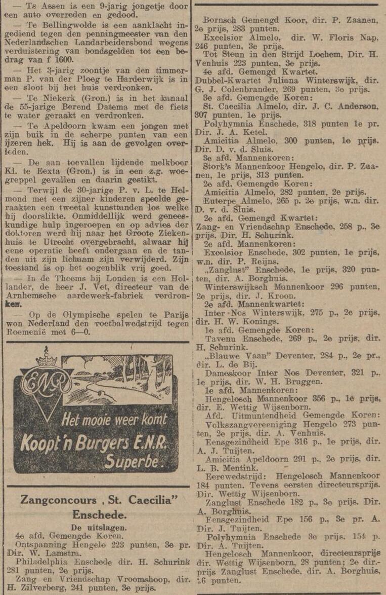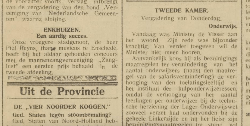 Bij zangconcours ‘Sinte Cecilia’ in Enschede heeft mannenkoor Excelsior, dat uitkwam in de tweede afdeling, de eerste prijs behaald. Reyns is waarnemend dirigent.