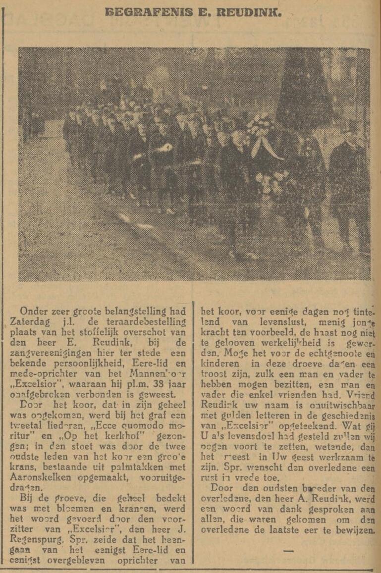Excelsior heeft samen met de Burgerharmonie een benefietconcert gegeven voor het Helden der Zee-fonds. Door de griepepidemie ontbraken vele zangers en muzikanten en ook de opkomst van het publiek viel tegen. Maar het was een mooi concert.