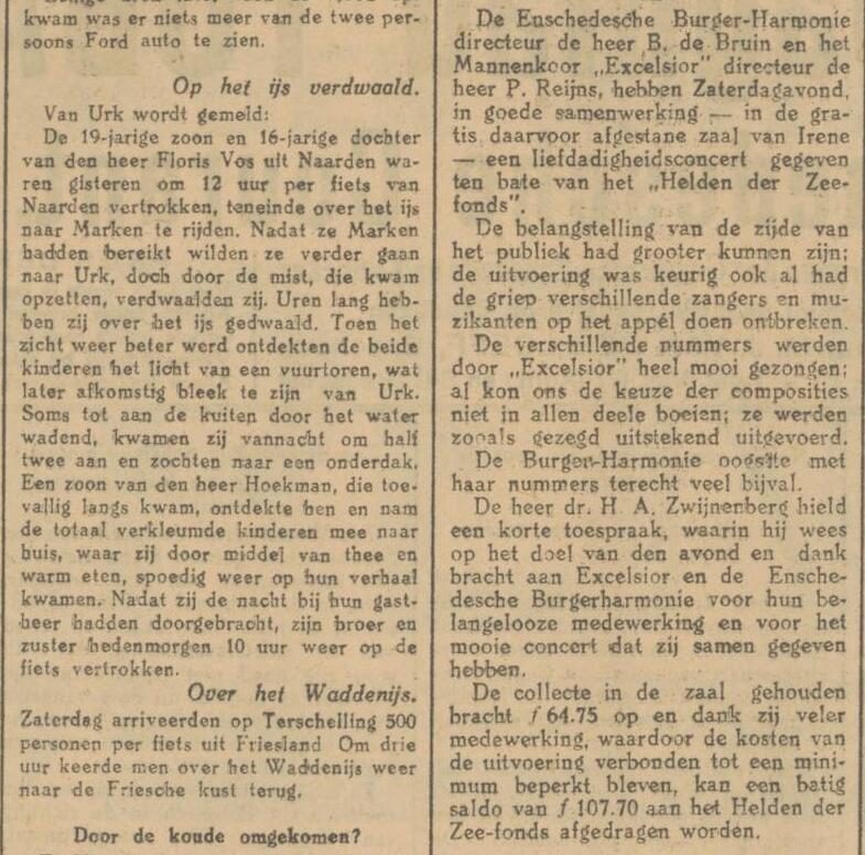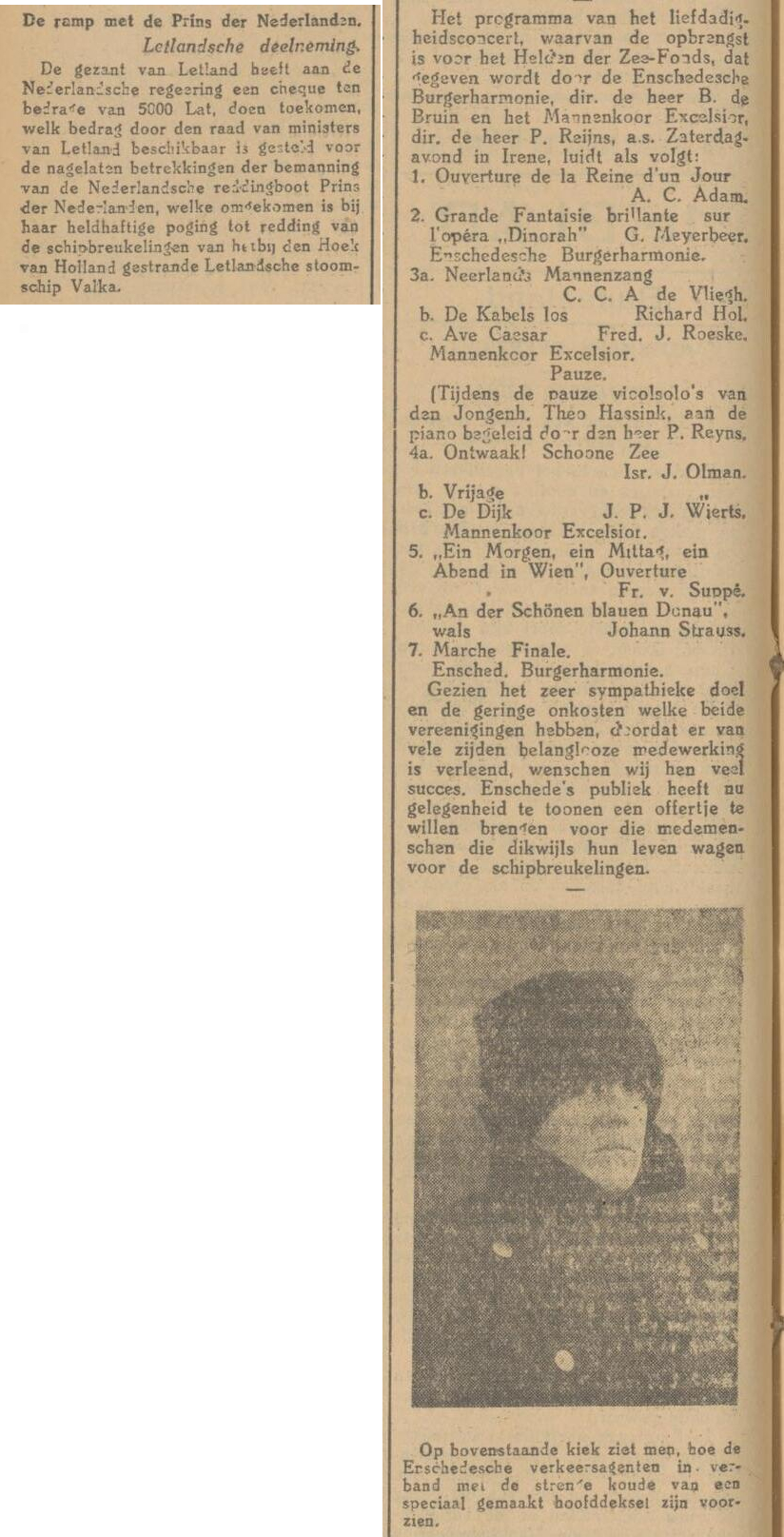 Excelsior geeft samen met de Burgerharmonie een benefietconcert voor Helden der Zee, het programma wordt in de krant gezet.