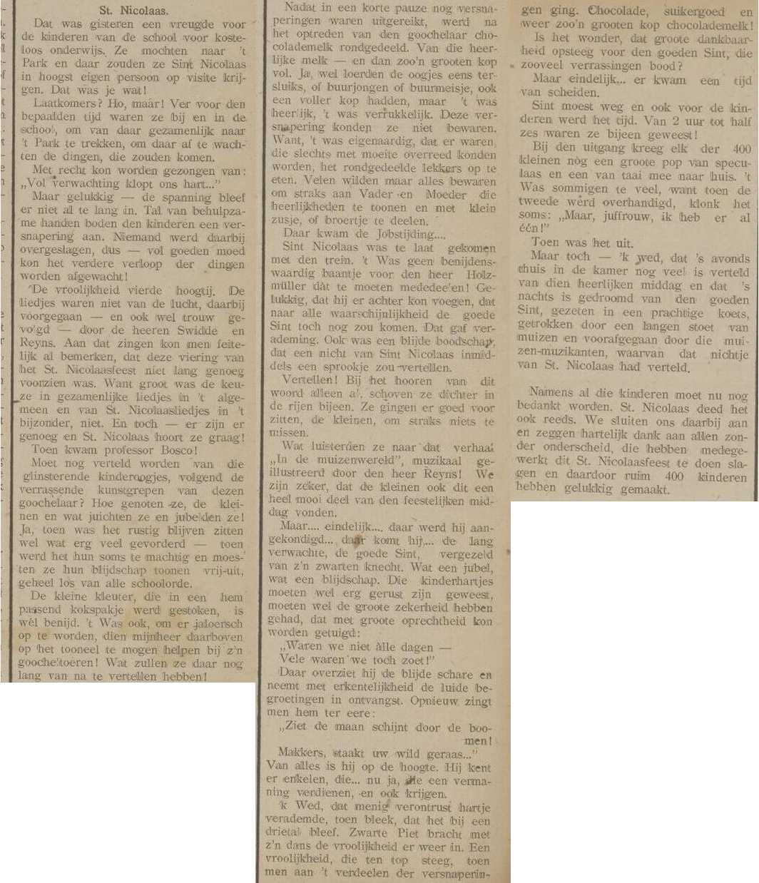 6 december 1917 – Hoornsche courant 6 maart 202121 maart 2021 / legêne Vierhonderd kinderen van de Muntschool hebben de Sint Nicolaasmiddag van hun leven en Swidde en Reijns maken er muziek bij. Home